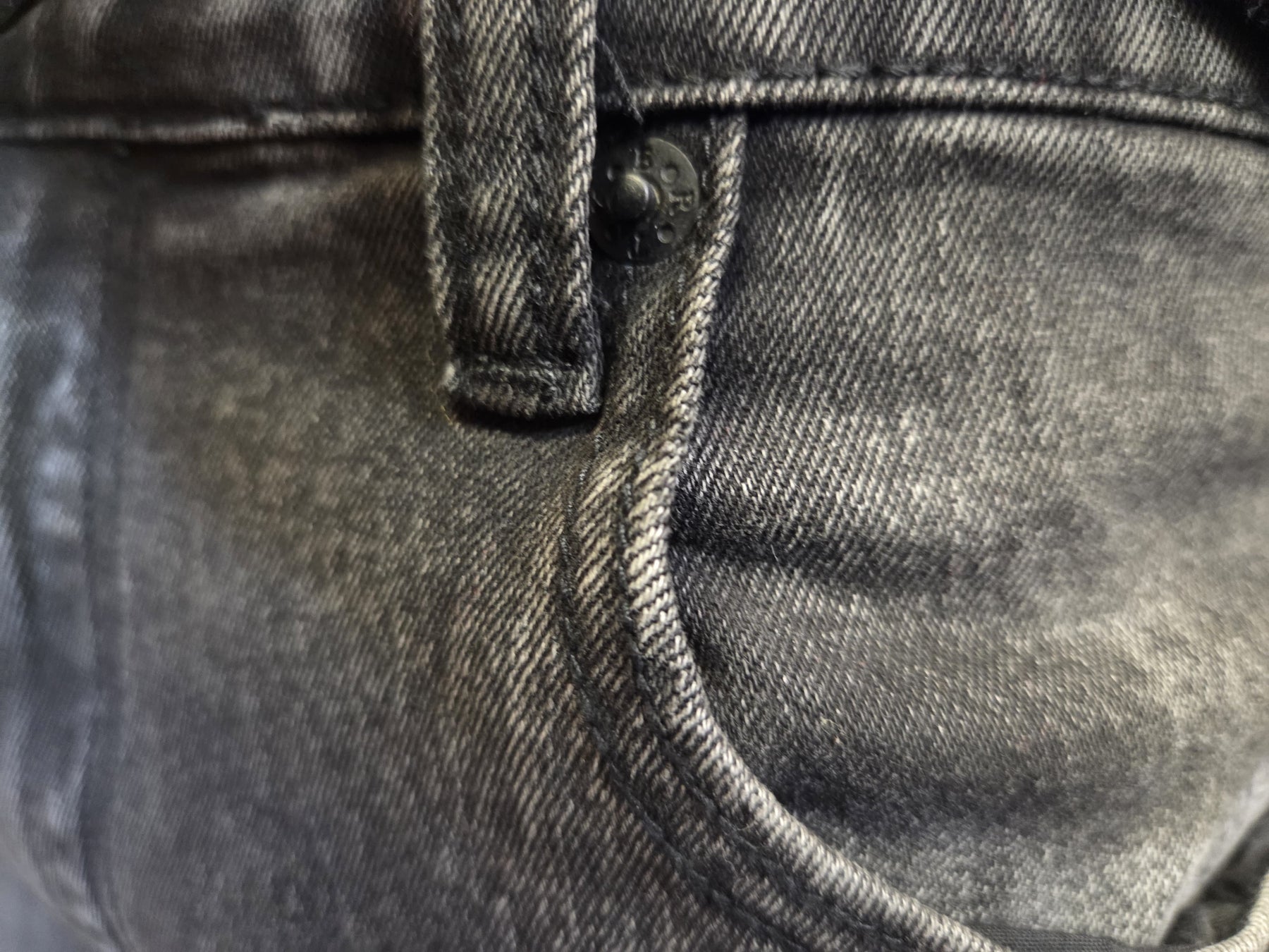 • Color & Material: The jeans are made of a washed or faded black denim, giving them a slightly distressed, charcoal-like appearance.