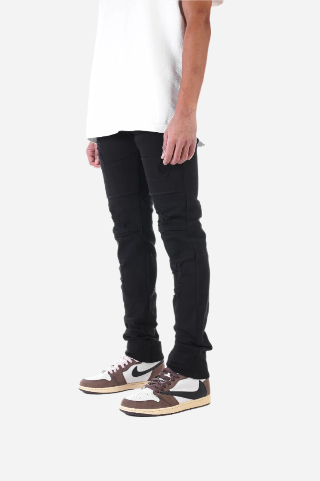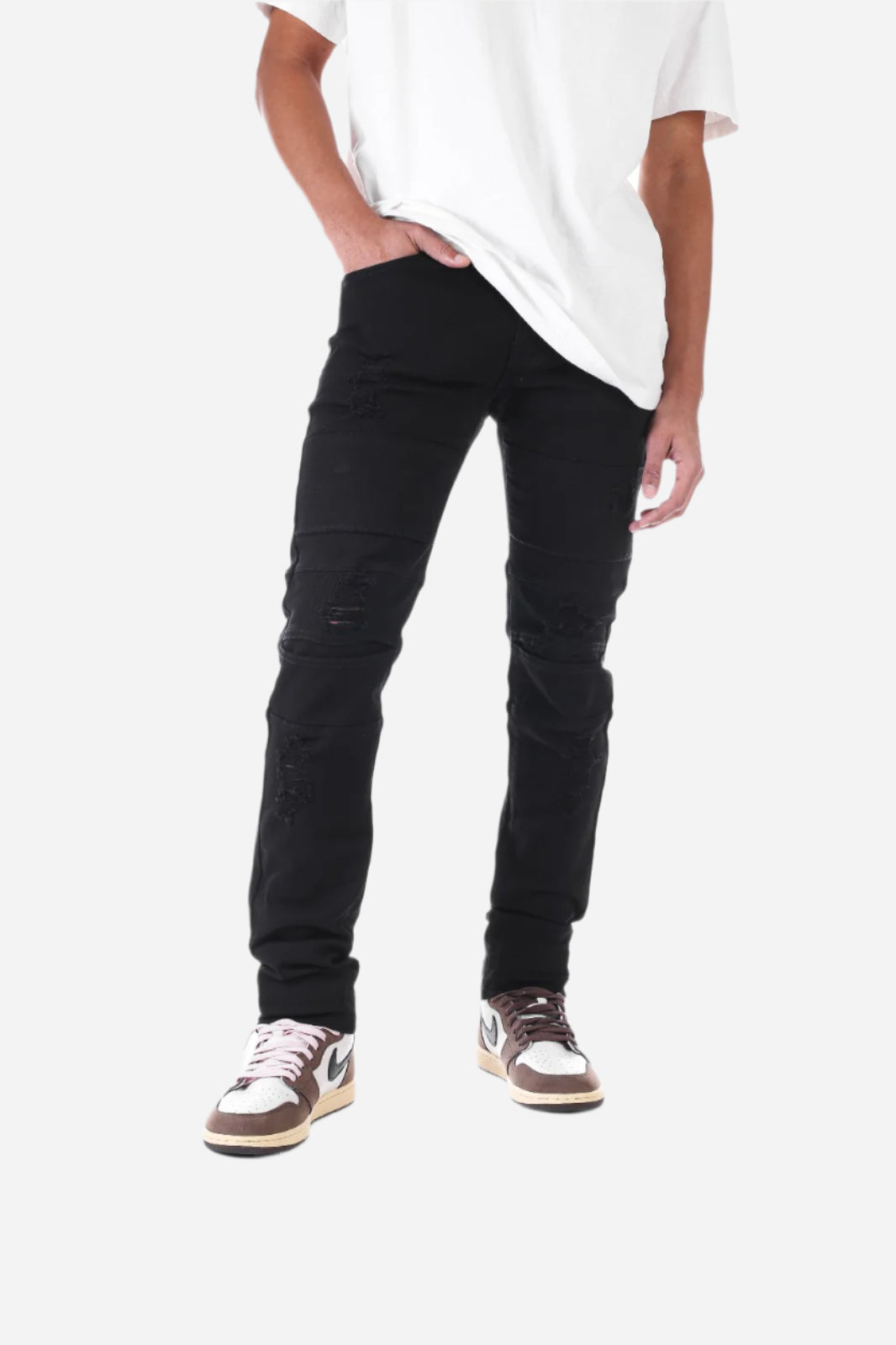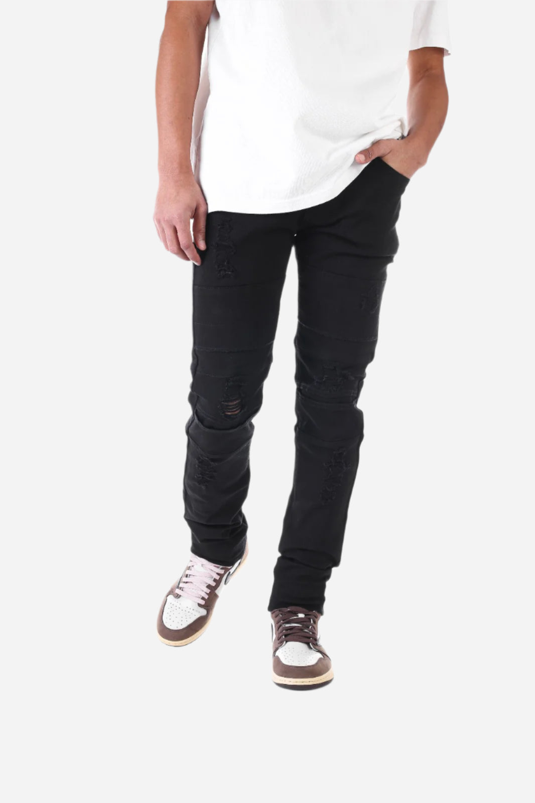 Black Destroyed Pant with Panel - Skinny Fit
