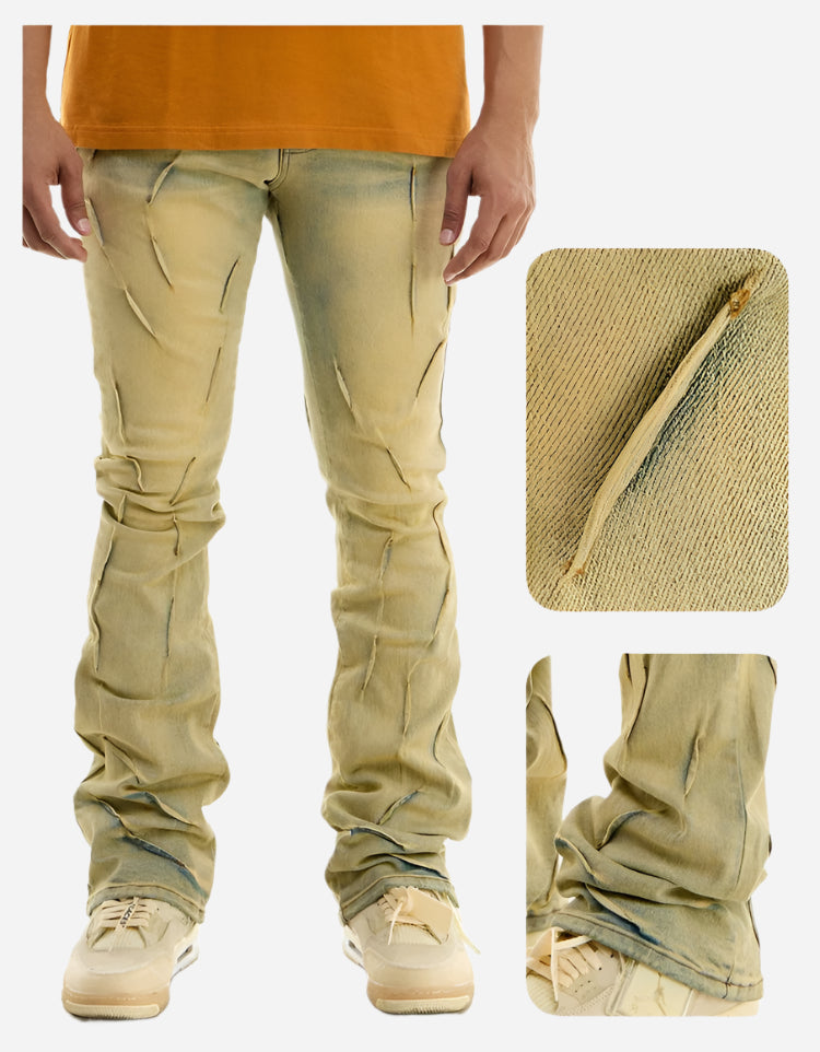 These Blue Pleated Skinny Flare Jeans are designed for a stylish and flattering fit. The unique pleated and stacked flare details add depth to the streamlined skinny design. Made with high-quality materials, these jeans offer both comfort and style for a sophisticated look.