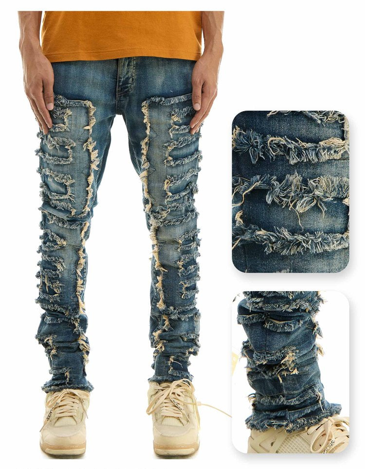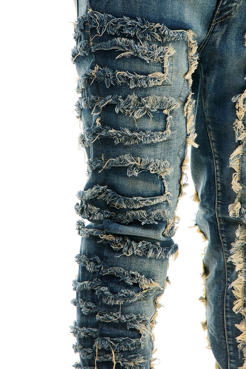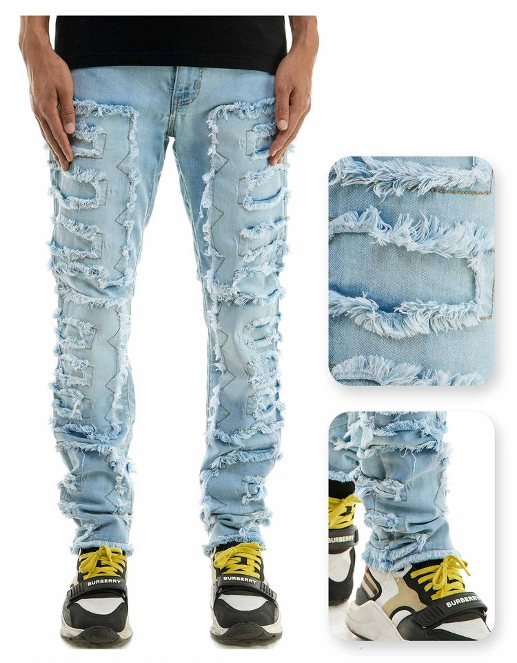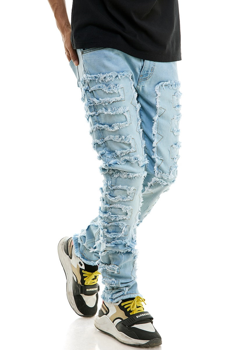 These Blue Symmetrical Patched Skinny Jeans offer a modern and stylish look with a slim and flattering skinny fit. The symmetrical patching adds a unique touch to the classic blue denim, making them perfect for those who want to stand out from the crowd. Crafted with high-quality materials, these jeans provide both comfort and durability. Upgrade your wardrobe with these on-trend jeans.