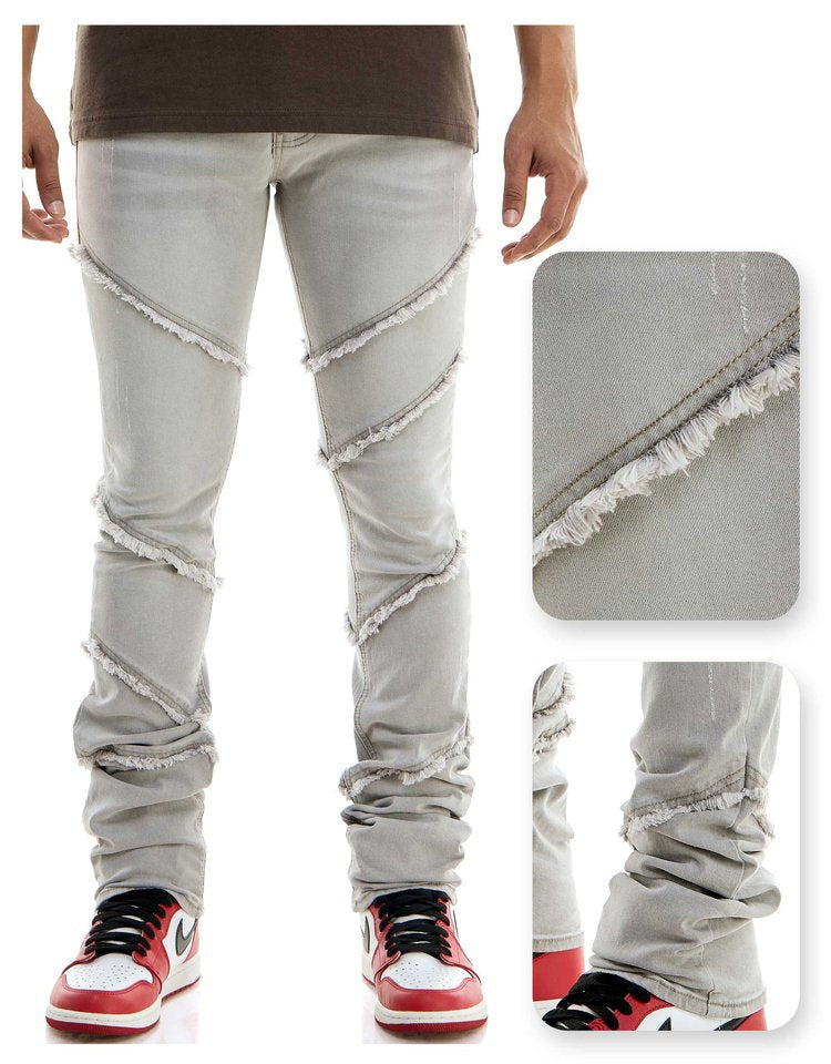 LT Grey Diagonal Cut Jeans - Stacked Skinny Fit