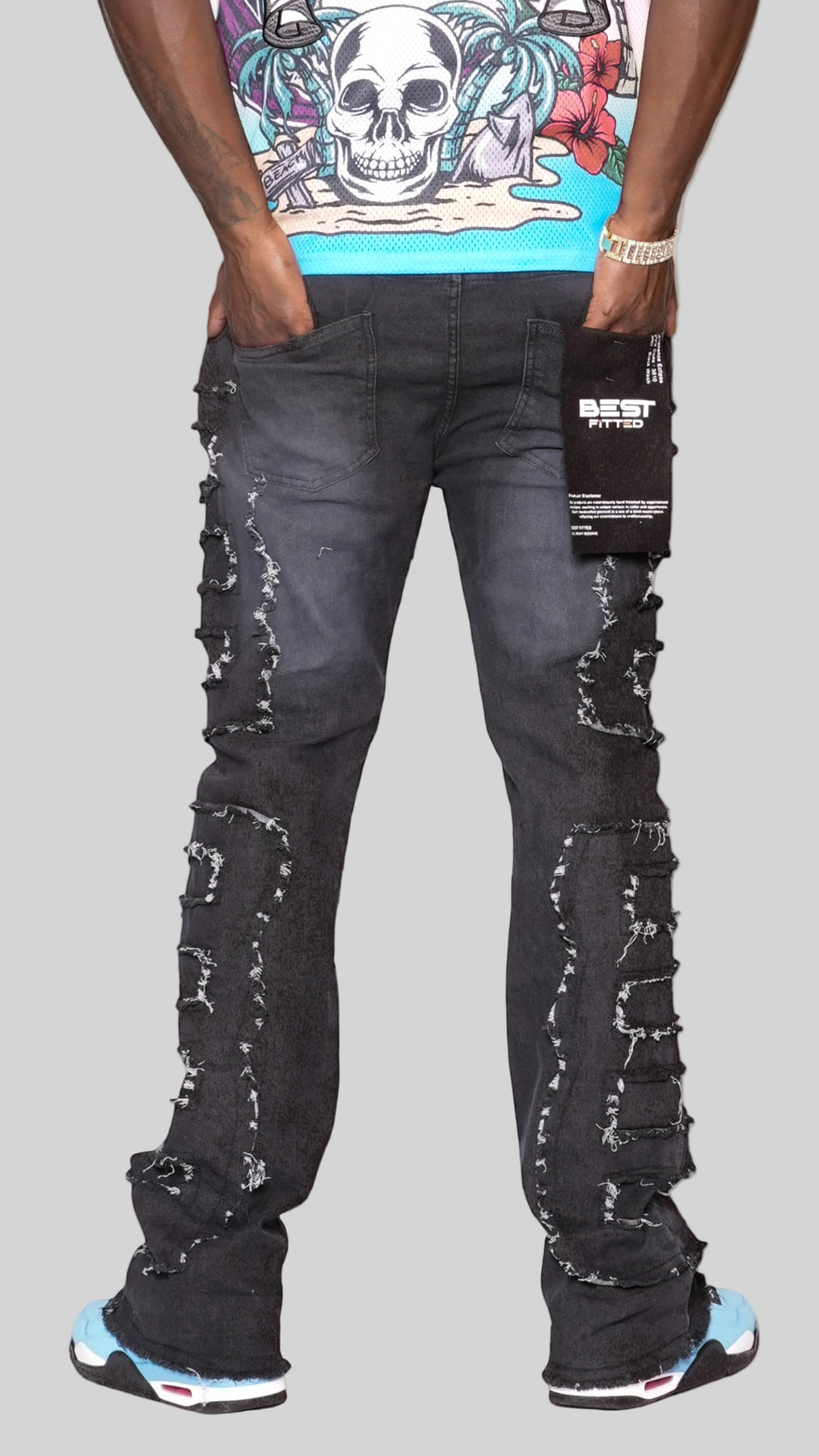 Men’s Stacked Jeans – Black Premium Streetwear Denim for Modern Style and Comfort