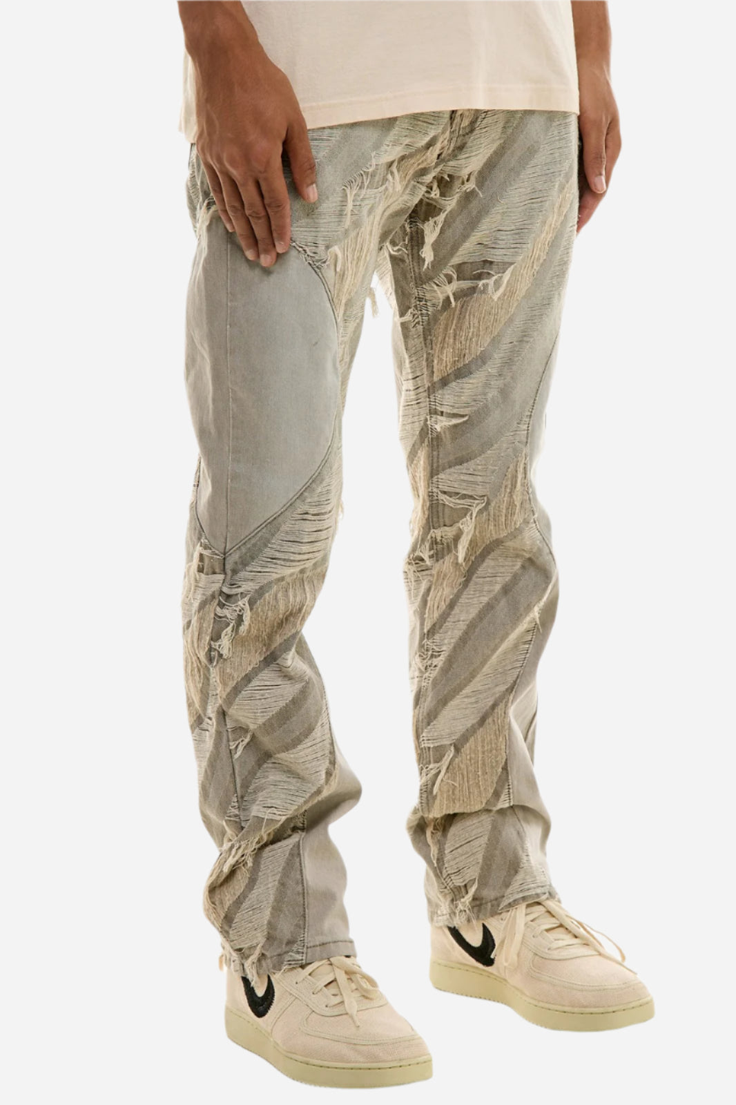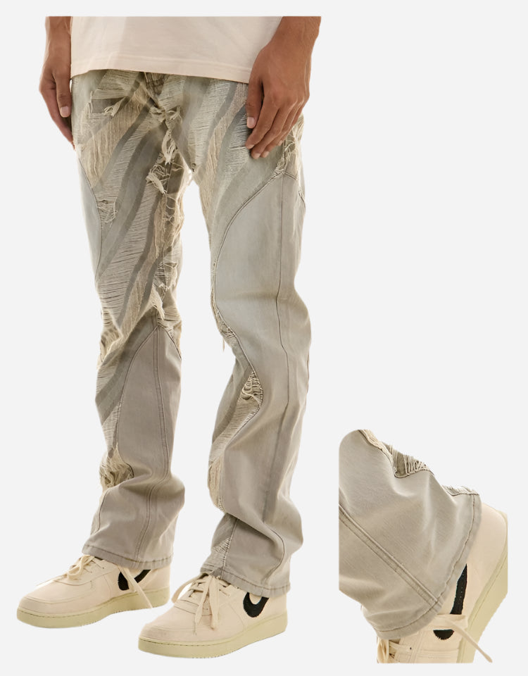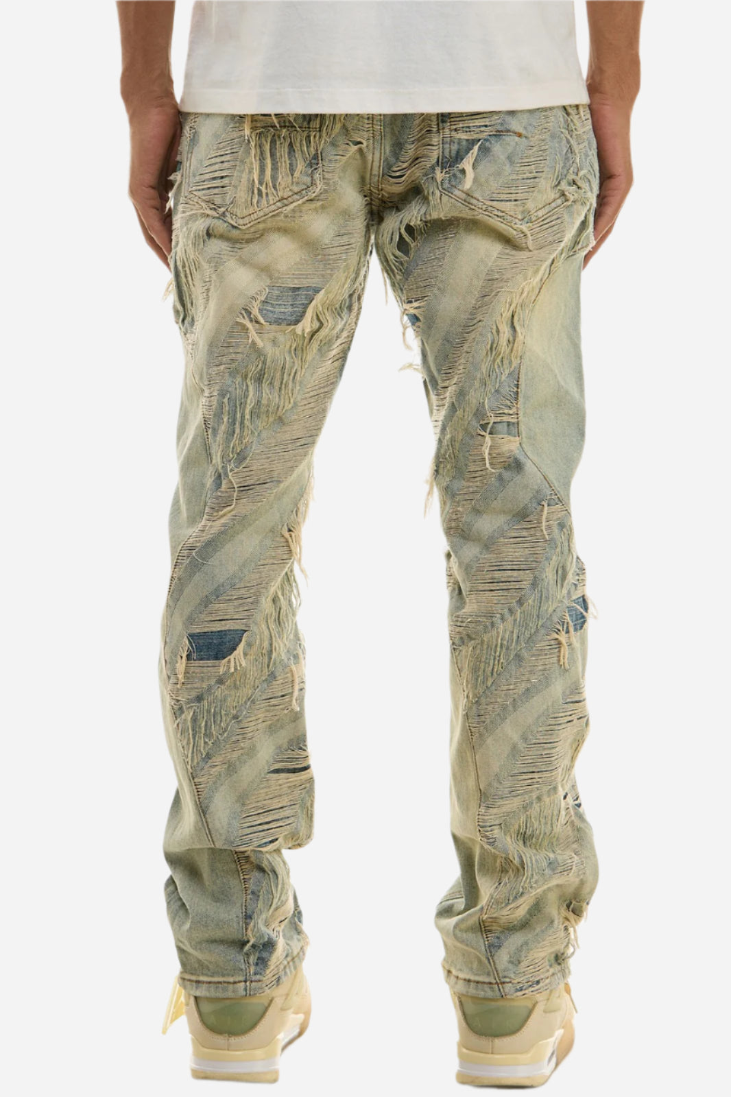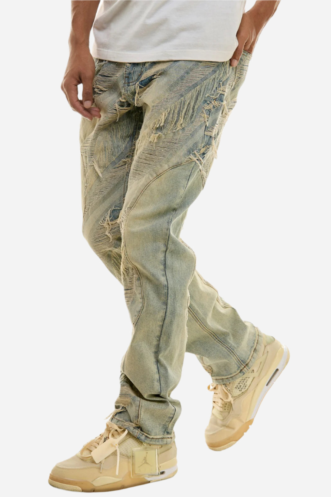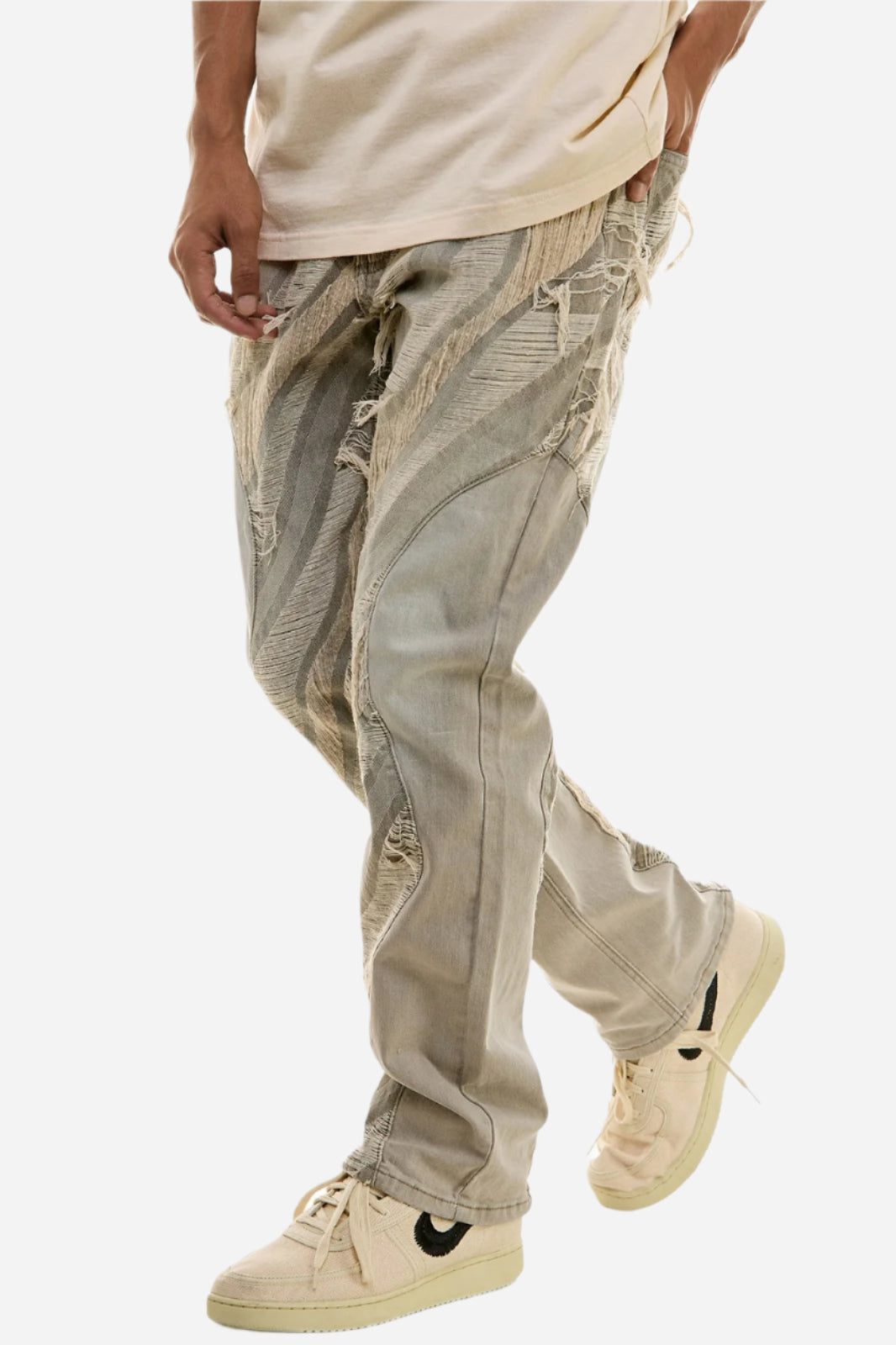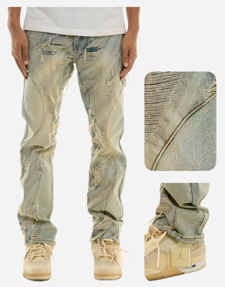 These blue-paneled Jacquard Jeans are the perfect combination of style and comfort. Designed with a slim fit, the paneled jacquard fabric adds a touch of sophistication to your look. Made to fit your body, these jeans are ideal for any occasion.