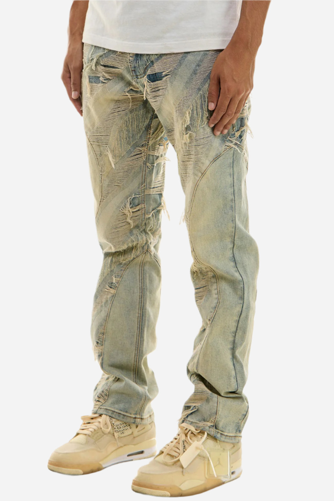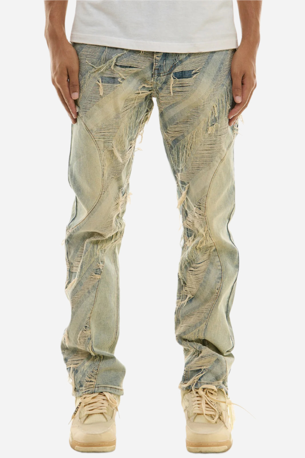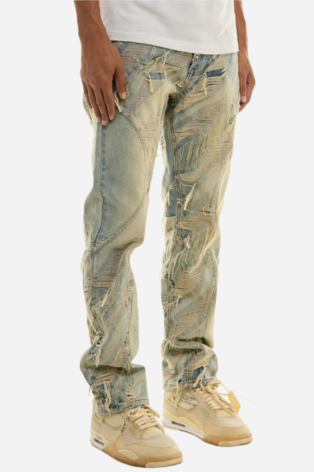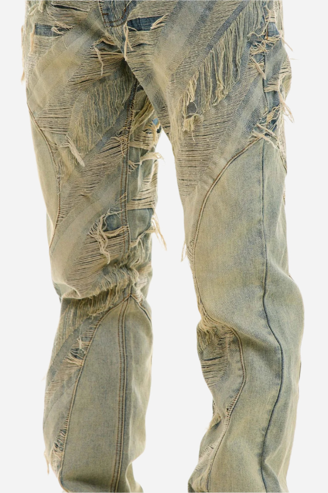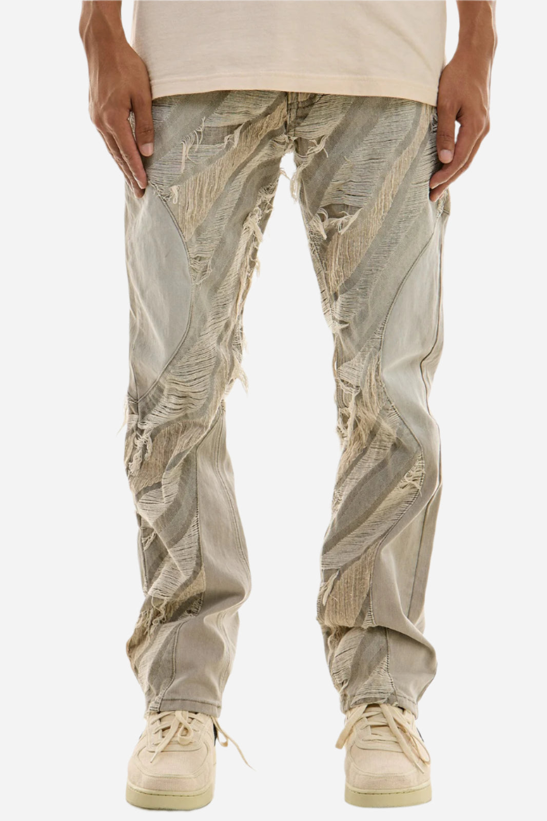 These blue-paneled Jacquard Jeans are the perfect combination of style and comfort. Designed with a slim fit, the paneled jacquard fabric adds a touch of sophistication to your look. Made to fit your body, these jeans are ideal for any occasion.